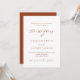 Frente: fundo branco, laranja queimado, texto colorido de terracota. Personalize e adicione seus nomes e detalhes. Fundo: fundo cor de laranja queimado. Adicione o URL do seu site de casamento ao código QR para obter detalhes e/ou RSVP