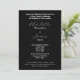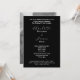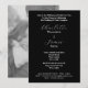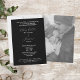 O roteiro branco elegante é apresentado na frente desses convites de casamento preto com uma foto clássica em preto e branco do casal feliz no verso. Para editar o texto e alterar a foto, clique no botão personalizar.