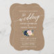 Moderna Elegante Caligrafia, Aquarela Rosa e Azul Floral Convite de Casamento Kraft