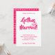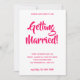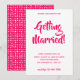 Convite para festa de noivado de tipografia de tendências. Moderno e na moda, este design apresenta uma combinação coordenada de script casual e tipos de sans serif elegantes em rosa brilhante. Cartões invertidos a um padrão desenhado manualmente de bolinhas brancas em um fundo rosa claro. Personalize este design personalizado com o seu próprio texto e detalhes. Altere facilmente as cores clicando em "Personalizar" para ir para a ferramenta design e selecionar novas.