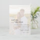 Convite para casamento de fotos com os seus nomes em caracteres elegantes, serif bold, com "e" e "recepção a seguir" na moderna letra manuscrita. Personalize com seus detalhes de casamento embaixo. Na parte de trás do cartão você pode encontrar espaço para o site de casamento do CÓDIGO QR e uma sala para uma mensagem extra. Por trás da tipografia, há uma camada branca semitransparente cobrindo a foto de sua escolha. Escolha uma foto clara e mais clara para realmente fazer o texto pop! Adicione uma foto vertical de hemorragia de cheio à parte traseira para obter um toque pessoal extra.