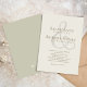 Esta design apresenta um convite verde de sábio do casamento, com um estilo elegante simples, um design de ampersor mínimo, com um trendy clássico formal. uma tipografia moderna e minimalista, com uma frente tradicional de creme de marfim leve, assim como uma cor sólida e um monograma no verso.