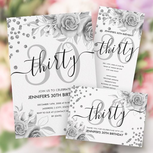Glam Silver Floral Glitter 30th Birthday Set Criado por Marta Burton