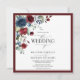 Convites Script de Aquarela Floral Azul Marinho Burgundy