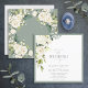 Baseado no nosso Chá de panela mais vendido, este maravilhoso e elegante convite de casamento quadrado apresenta um buquê de flores brancas como rosas e hydrangea, e verde botânico, e é bordado em uma cinza verde macia. Personalize seus detalhes acentuados com uma bela caligrafia feita à mão moderna em branco suave e preto. A parte de trás do convite tem o mesmo motivo floral branco. Entre em contato com o designer para produtos correspondentes. Copyright Elegant Invites, todos os direitos reservados.