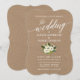 Moderno Convite de Casamento Kraft Floral Branco Verde Aquarela com Script de Caligrafia Elegante