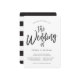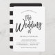 Um convite de casamento único com uma letra de estilo de script de dança seguida dos seus detalhes únicos do dia do casamento em preto e branco.