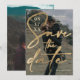 Um guião moderno e simples em folha de ouro falso sobre a camada preta salve o casamento da data, adicione sua foto.