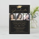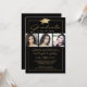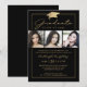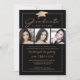 Convite para festa de formatura de fotos de ouro preto e champanhe, elegante, com 3 fotos quadradas, tipografia moderna de guiões manuscritos e um falso boné de formatura metálico de folha de ouro em champanhe. ASSISTÊNCIA: para obter ajuda com a modificação ou personalização do design, a alteração de cor ou a transferência do design para outro produto, entre em contato com o designer ANTES DE ENCOMENDAR através da guia MENSAGEM de Bate-papo Zazzle ou envie um email para makeitaboutyoustore@gmail.com.