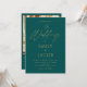 Celebre o seu casamento com este convite para o roteiro de fotos de código QR do casamento de ouro verde. Apresentando um fundo verde alto e ousado, uma elegante tipografia de guião dourada e espaço para uma foto personalizável, este design moderno combina sofisticação de tom de joia com conveniência prática. O código QR integrado facilita para os convidados o RSVP e o acesso instantâneo ao seu site de casamento. Perfeito para casamentos outono, comemorações de inverno, ou casais que adoram um papel de carta de joias ricas.
