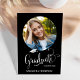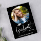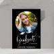 Celebre seu formando de estilo com este simples, mas elegante cartão com fotos de graduação! Apresentando um esquema de cores preto e branco, um roteiro de caligrafia e um design moderno minimalista, este cartão é perfeito para formandos de segundo grau ou universitários. Anuncie sua conquista de forma eterno e impressione convidados com um toque elegante para sua festa de formando.