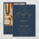 Apresentação do nosso convite à apresentação de tipografia moderna de casamento Dourado azul: faça uma declaração com os nossos elegantes convites de casamento que incluem tipografia moderna e sotaques azuis e dourados de Marinho luxuoso. Criados com muita atenção aos detalhes, esses convites exudem sofisticação e estilo, definindo o tom para seu dia especial. O elegante fundo azul Marinho é enfeitado com um espantoso guião dourado, criando um contraste impressionante que cativa o olho. Personalize os detalhes do seu casamento, desde a data e local até os nomes da noiva e do noivo, para criar um convite personalizado que reflita a sua história de amor única. Quer você esteja planejando um caso urbano chic ou uma família glamourosa, nosso Marinho Blue Dourado Invitation Modern Typografia Script certamente impressiona seus convidados e deixa uma impressão duradoura. Elevem a sua papelaria de casamento com este belo pacote de convite que combina design moderno com elegância eterno.