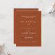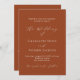 Um fundo cor de laranja queimado, terracota. Personalize e adicione seus nomes e detalhes. Voltar: adicione o URL do seu site de casamento ao código QR para obter detalhes e/ou RSVP