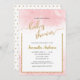 Este convite de festas apresenta um texto de caligrafia falsa dourada em uma cor d'água rosa. O design é acentuado com uma falsa borda de ouro. O texto personalizado permite adicionar os detalhes do chá.