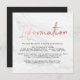 Cartões na moda e modernos de cerimônias de informações de casamento com fontes de script de folha de ouro faux de tendências, fundo de mármore branco e espaços reservados para seus detalhes de casamento personalizados. A parte traseira dos cartões de informações do casamento pode ser alterada para uma cor de sua escolha com a ferramenta Personalizar.