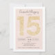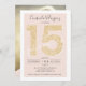 Um convite de aniversário moderno, chico e elegante de ouro Quinceañera com uma moderna tipografia Sweet 15 com brilho dourado num fundo rosado e elegante de cor rosa. Adicione sua foto atrás ou deixe um fundo rosa. Perfeito para o tema da princesa. Doce quinze!