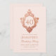 Este elegante convite de aniversário, rosa feminino e ouro rosa com ar vintage tem uma crista floral vintage em ouro falso rosa, que tem a idade nele. Todo texto pode ser personalizado e tem uma cor similar à da rosa dourada. A ocasião está escrita na caligrafia. O plano de fundo é cor-de-rosa-claro. A idade pode ser modificada. A crista floral vintage de uma antiga ligação ao cobrir, do livro "Rust, Smut Mildew & Mold", de 1870, agora no dominio público.