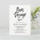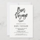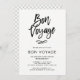 Este convite de festas de adeus do Bon Voyage moderno e elegante apresenta um texto preto moderno sobre um fundo branco.