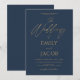 Apresentação do nosso Convite à Apresentação da Tipografia Moderna de Casamento Dourado Azul: Faça uma declaração com os nossos elegantes convites de casamento, com tipografia moderna e sotaques luxuosos de preto e ouro. Criados com muita atenção aos detalhes, esses convites exudem sofisticação e estilo, definindo o tom para seu dia especial. O elegante fundo azul Marinho é enfeitado com um espantoso guião dourado, criando um contraste impressionante que cativa o olho. Personalize os detalhes do seu casamento, desde a data e local até os nomes da noiva e do noivo, para criar um convite personalizado que reflita a sua história de amor única. Quer você esteja planejando um caso urbano chic ou uma família glamourosa, nosso Marinho Blue Dourado Invitation Modern Typografia Script certamente impressiona seus convidados e deixa uma impressão duradoura. Elevem a sua papelaria de casamento com este belo pacote de convite que combina design moderno com elegância eterno.