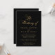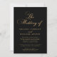 Convocação Dourada para Casamento Preto Elegante. Design elegante apresenta tipografia dourada a preto. Personalize com o nome e os detalhes do casamento do noivo e do noivo. A parte traseira apresenta uma impressão subestimada do nome do casal casado. Visite nossa loja, Austen & Grace, para ver a suíte de casamento de cheio, produtos correspondentes e muito mais, e entre em contato conosco se você precisar de produtos adicionais de correspondência ou qualquer assistência: contact@austenandgrace.com
