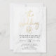 Convite de casamento na moda moderno com uma letra falsa de folha de ouro, fundo de mármore branco e espaços reservados para o seu convite de casamento personalizado. A parte de trás do convite pode ser alterada para uma cor de sua escolha com a ferramenta Personalizar.