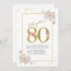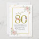 Convites Script Dourado Floral de 80 Birthday