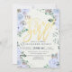 Letra Dourada Elegante Típica de Script e Modelos de Cartões de Convite para Chás de fraldas Florais de Cor de Água Azul e Lavanda de Luz Azul-clara e Vintage. Todo estilo de texto, cores, tamanhos podem ser modificados para ajustado das suas necessidades!