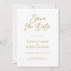 Moderno minimalista, branco, fundo branco, caligrafia personalizável de guião dourado, design elegante para salvar a data. O fundo branco com personalizável tipografia dourada evoca uma sensação de elegância clássica.
