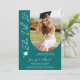 Festa de formatura Fotográfica O moderno Elegant Script Invices apresenta sua foto favorita com o texto "Ela Fez" em uma tipografia elegante de escrita de caligrafia em um fundo verde. Adicione as informações de seu convite de graduação abaixo. Personalize editando o texto nas caixas de texto fornecidas. Enviar como um download digital instantâneo, como um convite físico por e-mail ou ambos. Criado por ©2025 Evco Studio www.zazzle.com/store/evcostudio