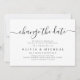 O script moderno "mudar a data" em preto e branco, com uma foto opcional do casal no verso, simples e elegante, informa aos seus convidados de casamento as informações atualizadas com este anúncio. Ver todas as peças correspondentes na coleção