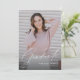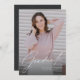 Este anúncio e convite para a graduação de fotos é a forma perfeita de celebrar seu formando. Com um moderno e elegante roteiro "formando" em branco, esse design também oferece espaço para personalização, incluindo nome, escola e ano. A parte de trás é uma cinza macia coordenadora com um padrão traço sutil para corresponder ao sublinhado na parte frontal e inclui espaço para texto de convite para festa de formatura. Este anúncio de graduação de na moda funciona bem para um formando de segundo grau ou um formando universitário. Outras cores e estilos disponíveis na coleção.