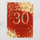 Elegante Glam Dourado Red Floral Glitter aniversário de 30 anos Script de convite modelo com disposição de flores, confete de brilho e script de tipografia moderna.