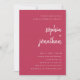 Esses convites de chuveiro de casais de casamento minimalistas elegantes apresentam tipografia de script moderna branca e texto limpo e sans serif para um design magenta vermelho colorido e moderno que você vai amar.