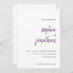 Estes elegantes e minimalistas convites de casamento mostram uma tipografia roxa, moderna, escrita e limpa, sans serif text em um fundo branco para um simples e na moda design que você vai amar.
