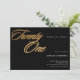 aniversário de 21 anos de surpresa,simples,moderno,festa de aniversário adulta,convites para aniversário de ouro,21 vinte e um,escrita manuscrita,preto e ouro,mínimo minimalista,elegante