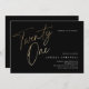 O moderno convite de festas minimalista apresenta o na moda faux gold foil number guião manuscrito Twentone e os detalhes do seu partido em serif clássico sobre cor preta de fundo, simples e elegante, convite para o aniversário de um excelente surpresa para homens e mulheres. A cor preta de fundo pode ser alterada para qualquer cor de sua escolha.