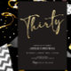 Convite para aniversário de 30 anos Dourado e preto de script minimalista Use este modelo de convite simples e moderno! Basta editar texto, baixá-lo ou impressão!