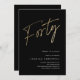 O aniversário de 40 anos minimalista moderno apresenta o na moda faux gold foil number guião manuscrito Quarty e os detalhes do seu partido em serif clássico sobre a cor preta de fundo, simples e elegante convite de aniversário de um marco para adultos, surpresa para excelentes, para homens e mulheres. a cor preta de fundo pode ser alterada para qualquer cor da sua escolha.
