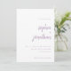 Estes elegantes e minimalistas convites de casamento apresentam a tipografia moderna da escrita e o texto clássico do sans serif para um simples e na moda, roxo claro e design branco que você vai amar.
