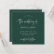 Este convite de casamento branco e verde esmeralda minimalista apresenta uma tipografia moderna escrita manual e um layout simples e na moda.