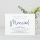 Belo design de Mão Moderna, Cartão de Convite para Festa de noivado de Casamento (comer, beber e, em breve, casar), no tema Marinho Blue. O cartão de convite perfeito, para a sua comemoração da festa de noivado.