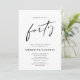 Convite Minimalista de Script Moderno de Chic do Partido Surpresa do aniversário de 40 anos... Nosso convite de festas na moda de surpresa preto-e-branco moderno apresenta um roteiro de escrita manual moderno chic com "quarenta" acima do seu texto de convite personalizado. O fundo do convite é preto elegante. Todo o texto (exceto o gráfico de texto "quarenta") pode ser facilmente revisado com seus próprios detalhes no modelo de personalização.
