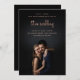 Este elegante convite de casamento apresenta o moderno e falso roteiro de ouro rosa e sua foto pessoal favorita para um visual simples mas glamouroso. O fundo do convite é uma cor preta rica.