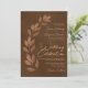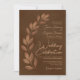 Este convite para o casamento apresenta uma design moderna com texto justificável e um som de folhas pintadas manualmente no outono em tons de laranja ferrugem e números queimados. A inscrição apresenta uma fonte moderna e o fundo marmoreado castanho-castanho adiciona textura e profundidade. Simples, rústico, exclusivo e chic, este convite é uma forma excelente de adicionar estilo contemporâneo à elegância clássica.