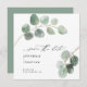 O moderno escritor elegante vintage sem foto casamento de eucalipto salva a data.