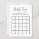 Este cartão de bingo de chá de panela moderno, preto e branco apresenta uma tipografia de script moderna em um visual falso de rosa de ouro e um layout simples e na moda.