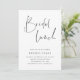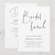 Convide os convidados para celebrar a noiva com esses convites modernos e minimalistas de lanche de chá de panela frente e verso da Redwood & Vine Design Co em clássico preto e branco. O design simples apresenta "lanche de noiva" em escrita casual à mão, com os detalhes do seu evento abaixo em letras modernas em preto cinza suave. Personalize o verso com detalhes adicionais; mostrado com uma solicitação de receita, pedido de presente sem embalagem (exposição do chá) e um código QR de lista de presentes.
