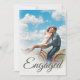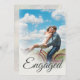 Uma fotografia simples com um moderno roteiro elegante anunciando seu Noivado no topo. A foto mudou facilmente para sua própria foto pessoal. A foto no verso aparecerá esmaecida como no exemplo. O texto no sentido inverso é facilmente alterado para si próprio.