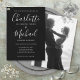 Destacando nomes de estilo exclusivo, este convite de casamento preto e branco elegante pode ser personalizado com suas informações em letras brancas elegantes com a foto monocromática escolhida no verso. Concebido por Thisisnotme©