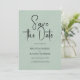 Espetáculo minimalista moderno, personalizável tipografia de escrita negra, elegante convite para salvar a data. O fundo verde-claro impresso de textura de linho adiciona um toque de sensação orgânica de elegância clássica. Outras cores estão disponíveis.